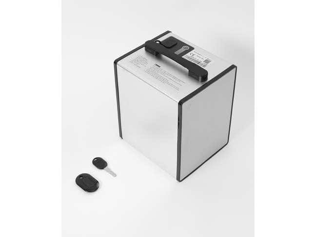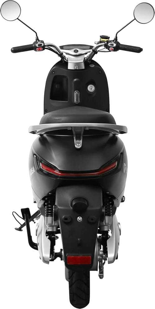 Skuterju pripada prenosna li-ion baterija z dometom ~65 kilometrov, LED svetila, alarm.