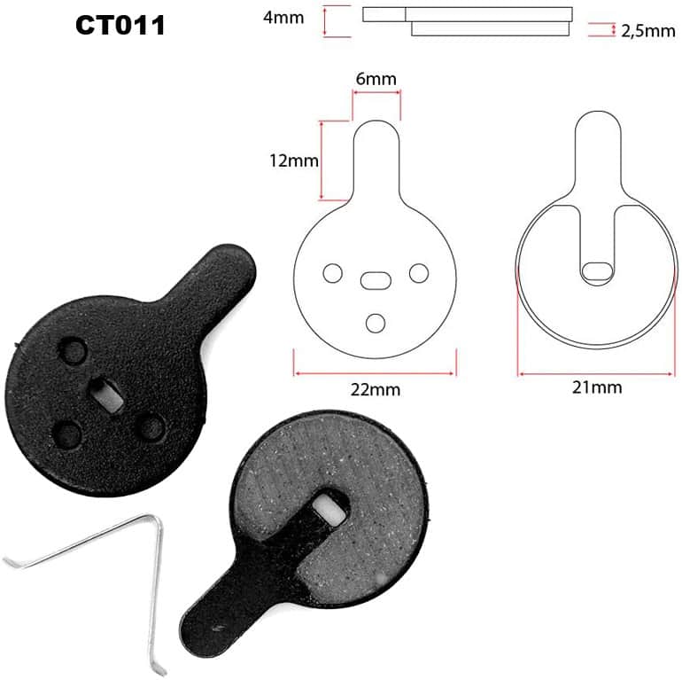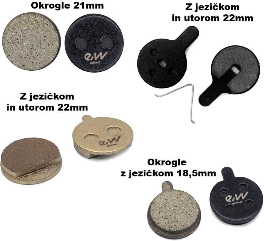 Zavorne ploščice za različne električne skiroje in nekatera druga vozila. Okrogle ploščice z jezičkom so primerne za MS Energy E21, UrbanGlide E-Cross Pro in druge. Pred naročilom preverite dimenzije in obliko oblog na vašem skiroju.